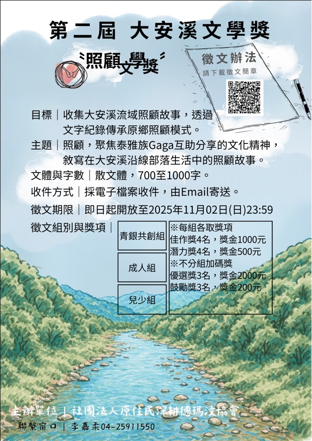 睽違兩年一次的大安溪文學獎,終於要在2025年展開了~
