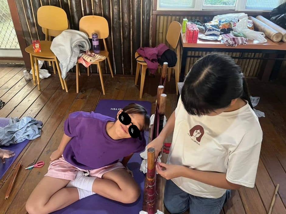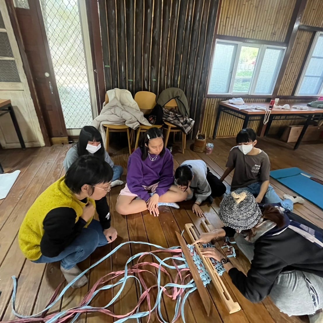 展望會給我一個極困難的任務是,在五天中帶領國中女孩完成織布,讓這些織布可以加工成背心讓長官穿進國際,分享泰雅織布的美和肯定泰雅女孩的能力。受邀來的女孩們99%是我從國小教過的小織女、有曾經帶到台北和其他族群交流、有一起達成織布畢業禮物任務,甚至有當過初階班的助教!在織布技能上看似穩穩的,但這禮拜下來,我開始懷疑自己的判斷力了...一個一個歷經kusung線斷掉、kciyan斷掉、wakin斷掉,我的理智線也快斷了,女孩們的發條也跟自己綁wakin一樣一直鬆掉,我想起了在南澳泰雅屋學織時聽到的故事們,是不是我在陪伴的過程中無意間觸犯了Gaga?今天早上跟少女們分享了我的師傅所提及山里部落媳婦向婆婆求學織的故事,織布這件事是多麼神聖,我們的心如何面對;也激動得道出自己憑什麼身為外族卻來教泰雅織布,只因為我羨慕女孩們還有部落生活、還有文化可以學習,我在學織的過程也努力想要找西拉雅血緣/泰雅部落生活的認同,幸運的泰雅女孩們何不把握呢?