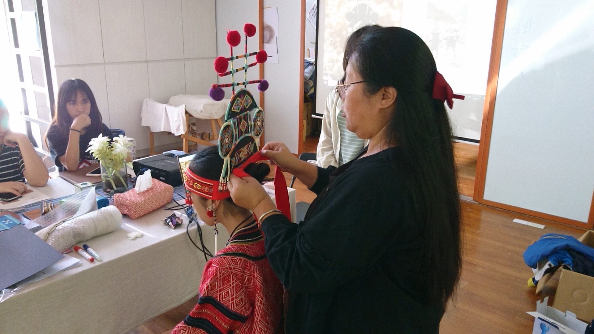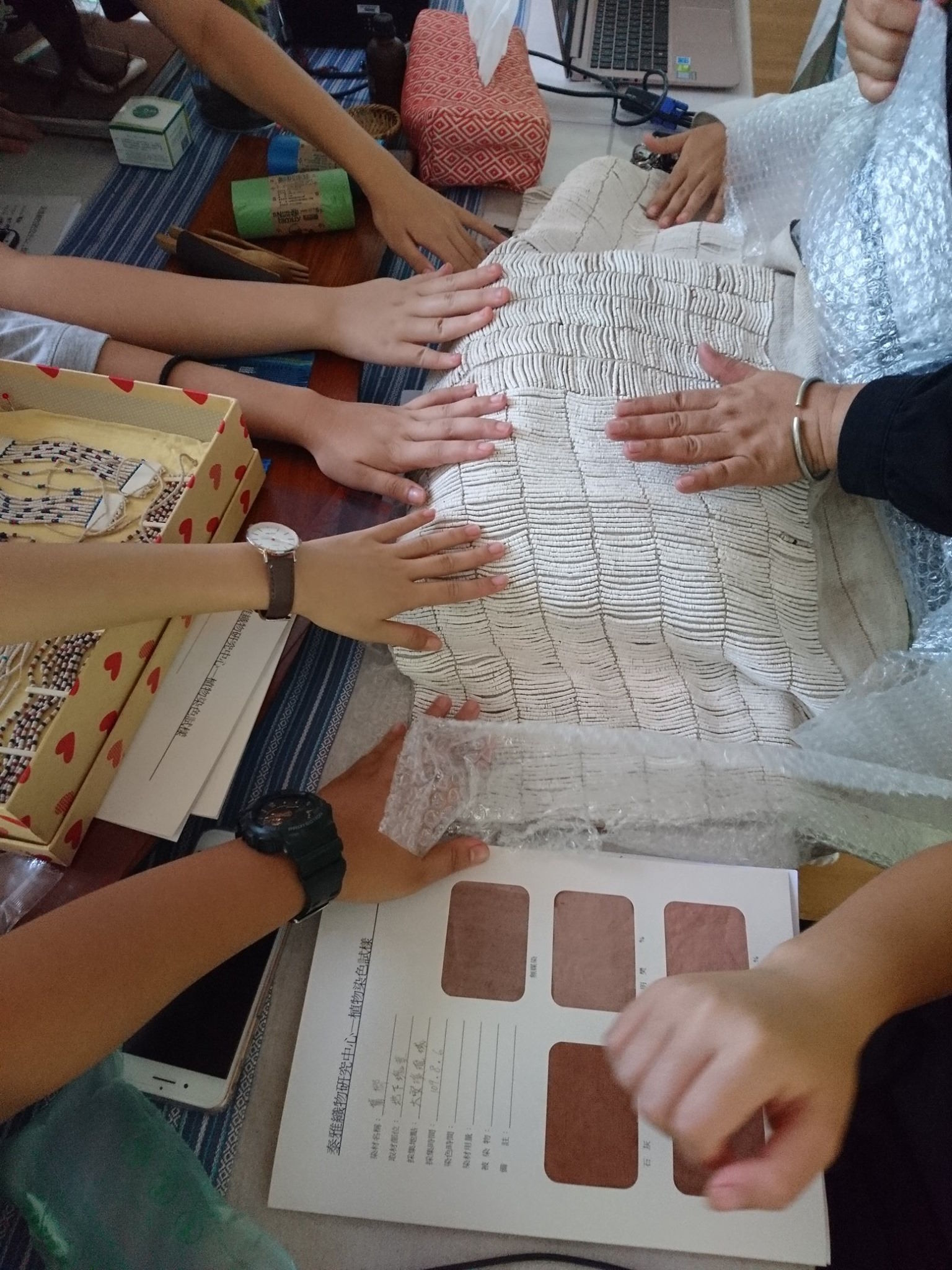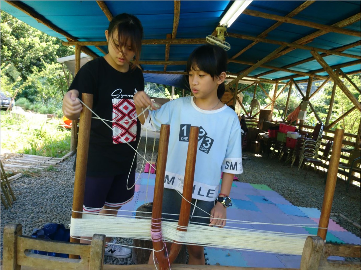 課程的開始,Pisuy老師先告訴她們傳統織布對泰雅族的重要意涵以及泰雅女性的角色意義,這部分我不管聽幾次都會對祖先的智慧豎起心中的大拇指,再來就是原料的取得,因為小朋友們在學校都上過這些課,聽到她們說出來的答案幾乎都是正確的,我覺得她們也可以去當老師了,有些問題是我不會或忘記的,她們竟然都回答得出來,我也對她們豎起我心中的大拇指!!!