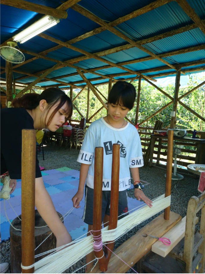 我之前有來深耕德瑪汶協會工讀過幾次,也透過協會上了織布課,雖然上課的機會沒有很多,但身為原住民,我覺得把自己的文化傳承下去很重要,協會這次讓我來擔任助教,雖然之前有類似的經驗,但還是會擔心自己沒幫到什麼,希望來這裡學織布的孩子們都能有所收穫。第一天去的時候很擔心沒有幫助到什麼,還好她們會主動來問我,也幫了我很多,尤其是泰雅文化的知識回答真的讓我很驚訝。可是她們有時候很不專心,會讓人不想教,但如果一個不學,一個不教,那就不用再來了,但是我們是想讓她們學習自己的文化,在教她們的同時也是讓自己複習之前學過的。我覺得當助教除了幫助她們有問題的地方,還有一個就是陪伴,透過這幾天的陪伴,看到她們每一個人的個性都不一樣,也讓我想起國小的我,很羨慕國小現在有實驗課程,我很想去體驗看看。