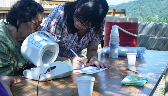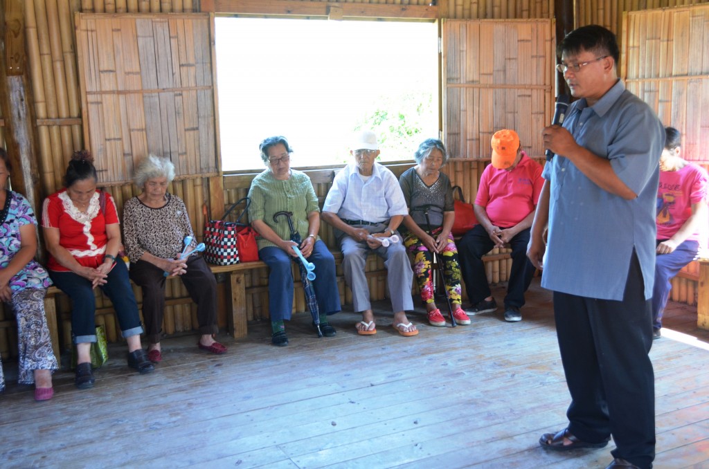 早上八點開始布置會場,早就已經有長輩們坐在教會外聊天等待活動開始,九點後長輩們陸陸續續走進會場,一到就請他們量血壓,看到其他部落的長輩們也聊天起來,問問最近好不好啊?你來自哪裡啊?但早上天氣實在是太好了,外面即便搭了帳篷依舊沒有竹屋裡涼快,大家就移到竹屋裡,頓時因為長輩們的歡樂聲竹屋像有了生命一樣,協會執行秘書建治在老人家面前說起Atayal (泰雅)的話,即便在旁邊聽不懂內容是甚麼,但長輩們眼睛都盯著他看,是熟悉的語言接近了他們,在黃牧師的祝禱下開始今天的活動。