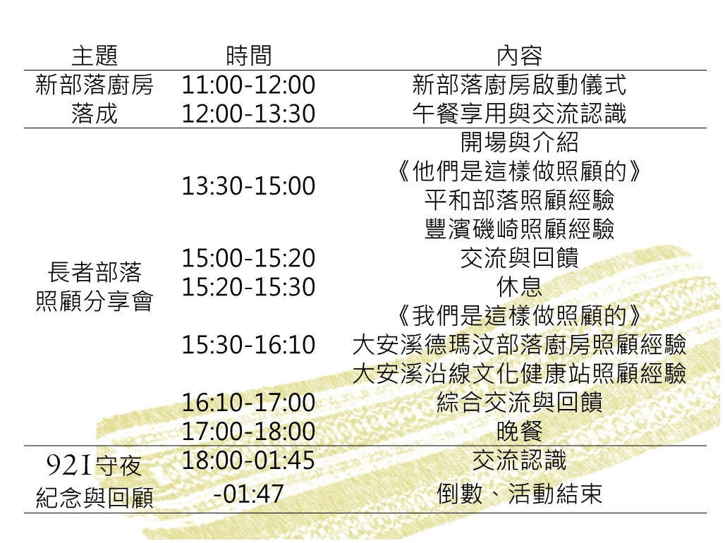 這天是個重要的日子,德瑪汶邀請您一起來紀念921、見證新廚房落成、共同參與部落長輩的照顧經驗。